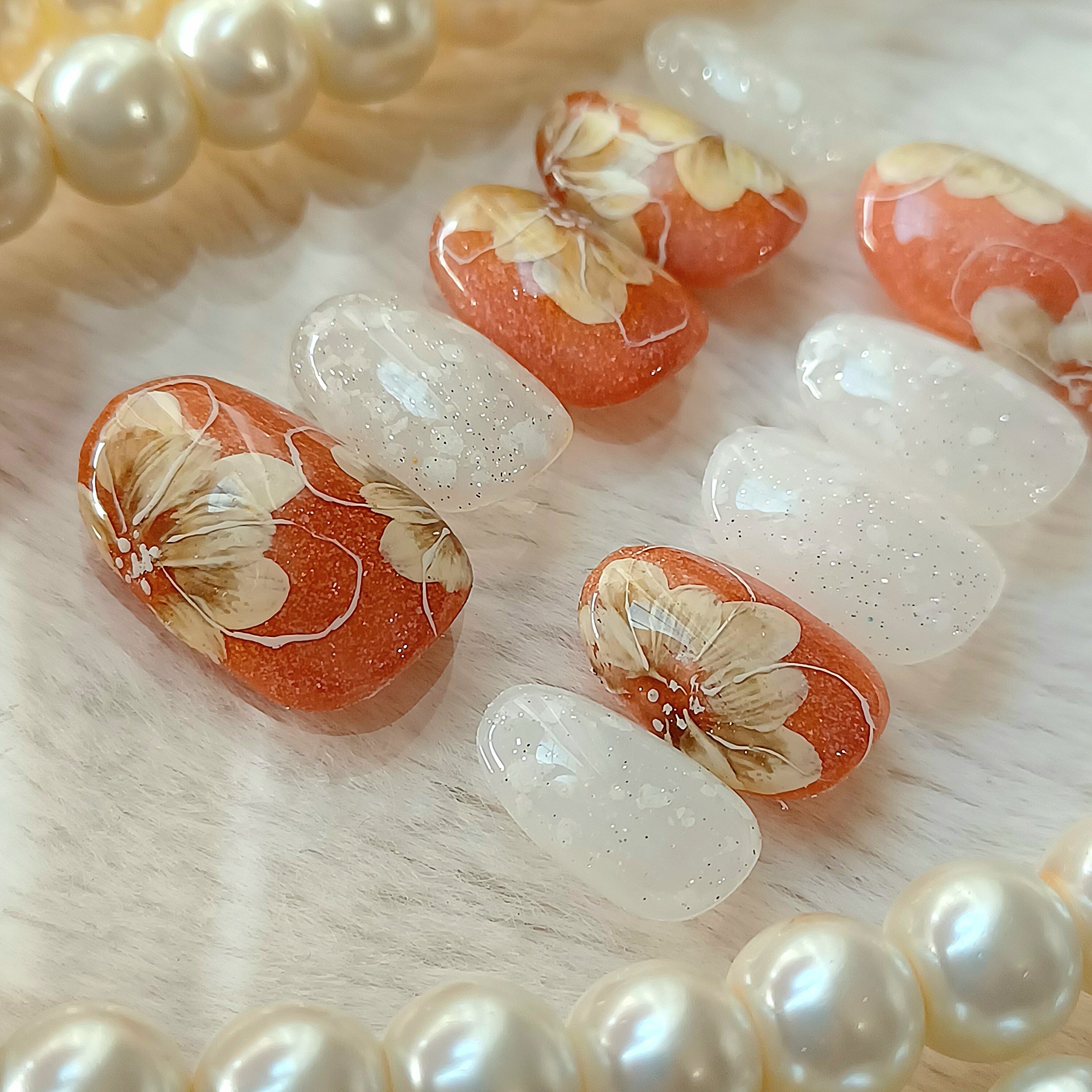 ネイル ネイルチップ ネイルデザイン ネイルアート ネイルチップ販売 オーダーネイルチップ 春ネイル 春デザイン フラワー お花 手描き 手書き 大人かわいい 卒業式 入学式 結婚式 お呼ばれ ウェディング ブライダル 前撮り ブラウン