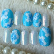 ネイル ネイルチップ ネイルデザイン ネイルアート ネイルチップ販売 オーダーネイルチップ 春ネイル 春デザイン フラワー お花 手描き 手書き 大人かわいい 卒業式 入学式 結婚式 お呼ばれ ウェディング ブライダル 前撮り ブルー 水色 オーロラ