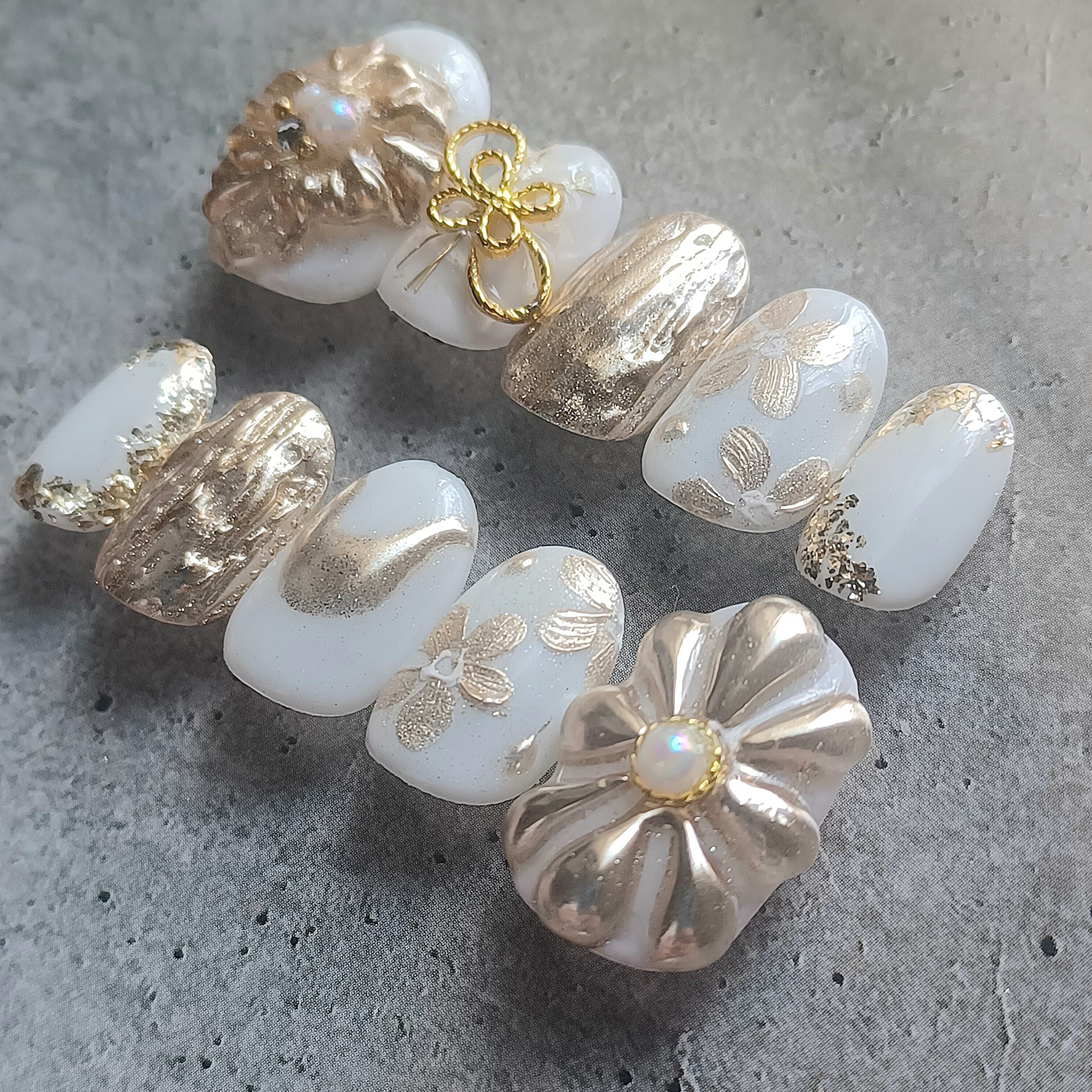 【受注製作】振袖 成人式 結婚式 白×金 ネイルチップ No.225
