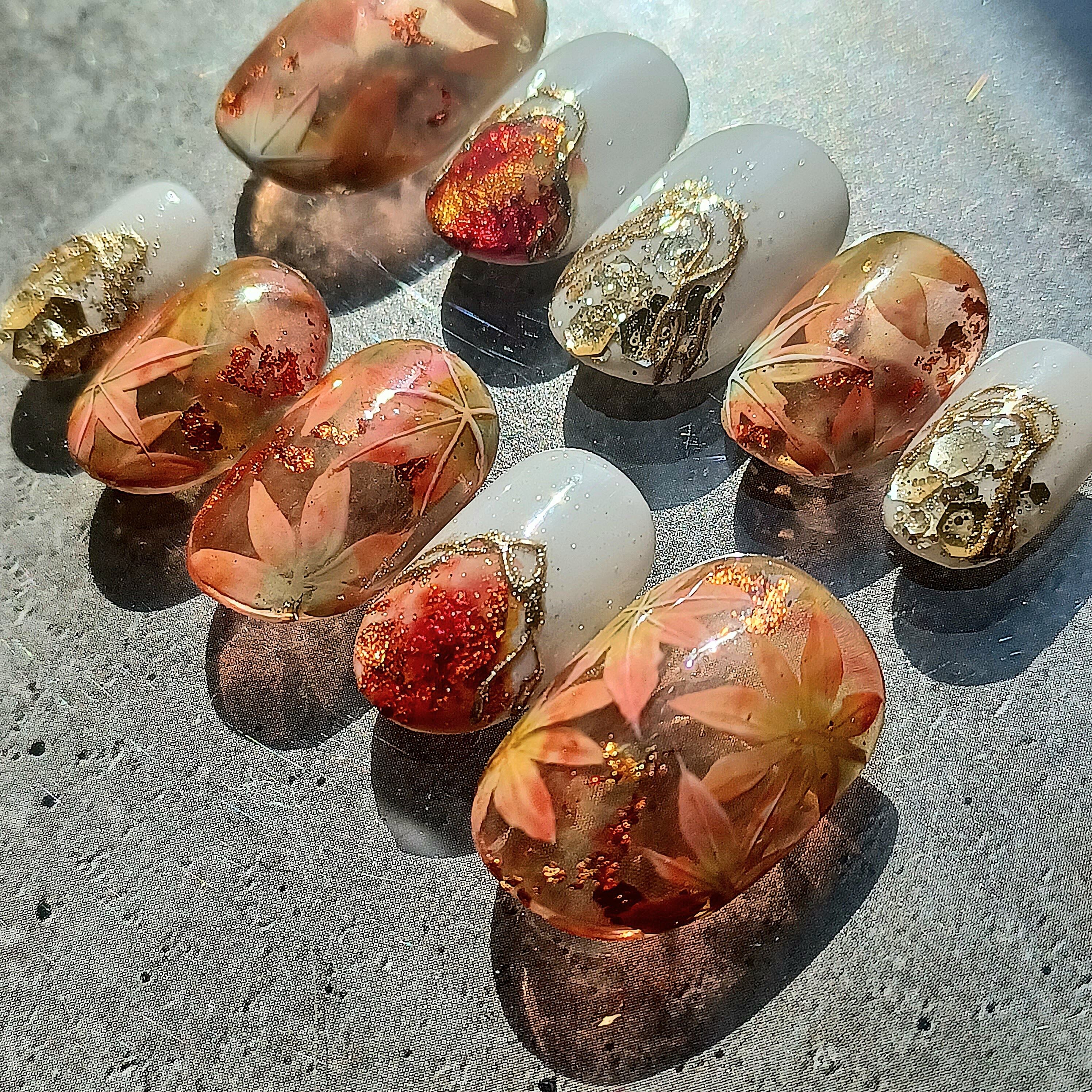 \即日発送/フリーサイズ 紅葉 ネイルチップ 現品 No.233