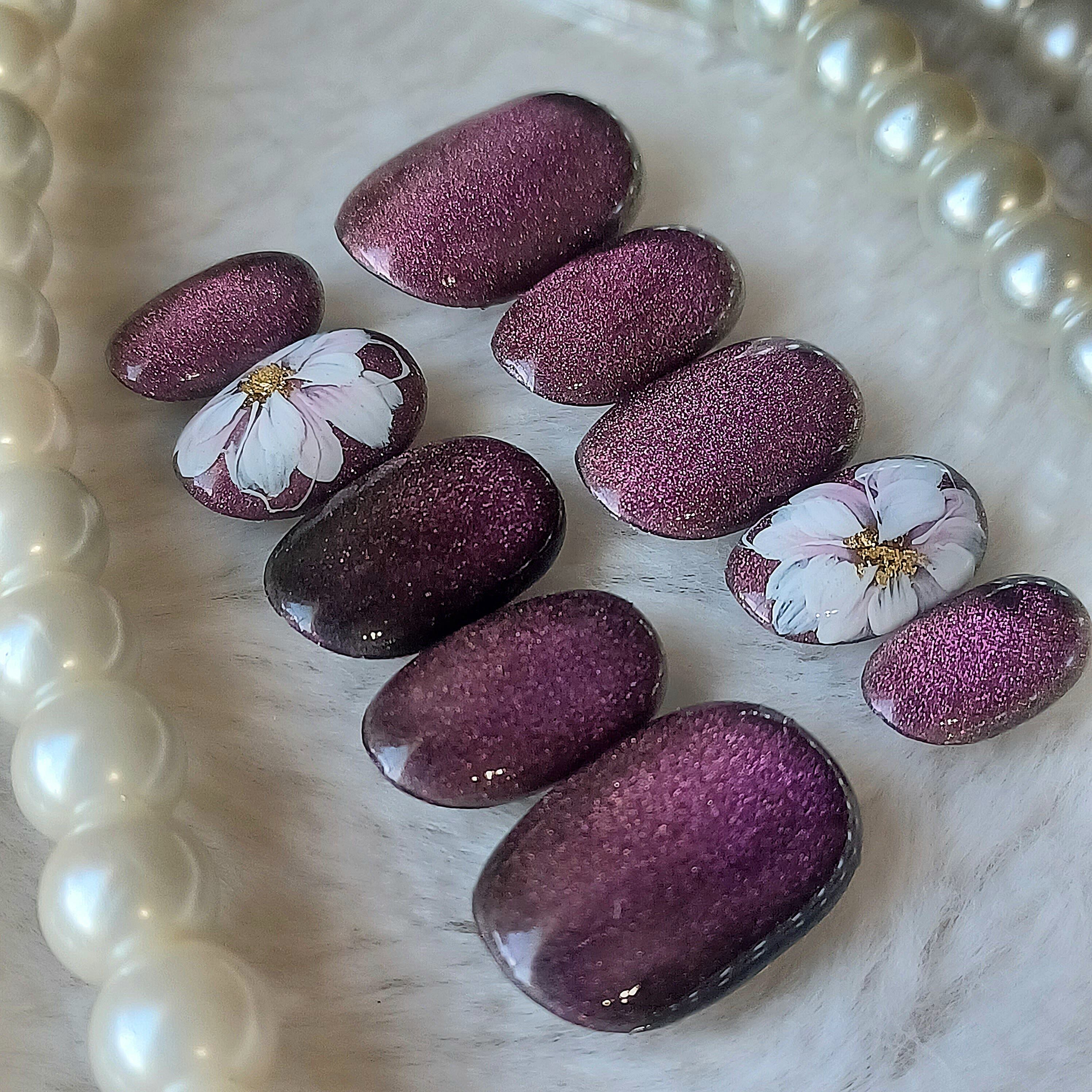 ネイルチップ販売 オーダーネイルチップ 大人かわいい 成人式 振袖 卒業式 入学式 結婚式 お呼ばれ ウェディング ブライダル 前撮り 七五三 お祭り イベント フェス 旅行 お出掛け デート 女子会 お正月 クリスマス 普段使い 個性派 手描きフラワー お花 手書き マグネット キラキラ ピンク パープル
