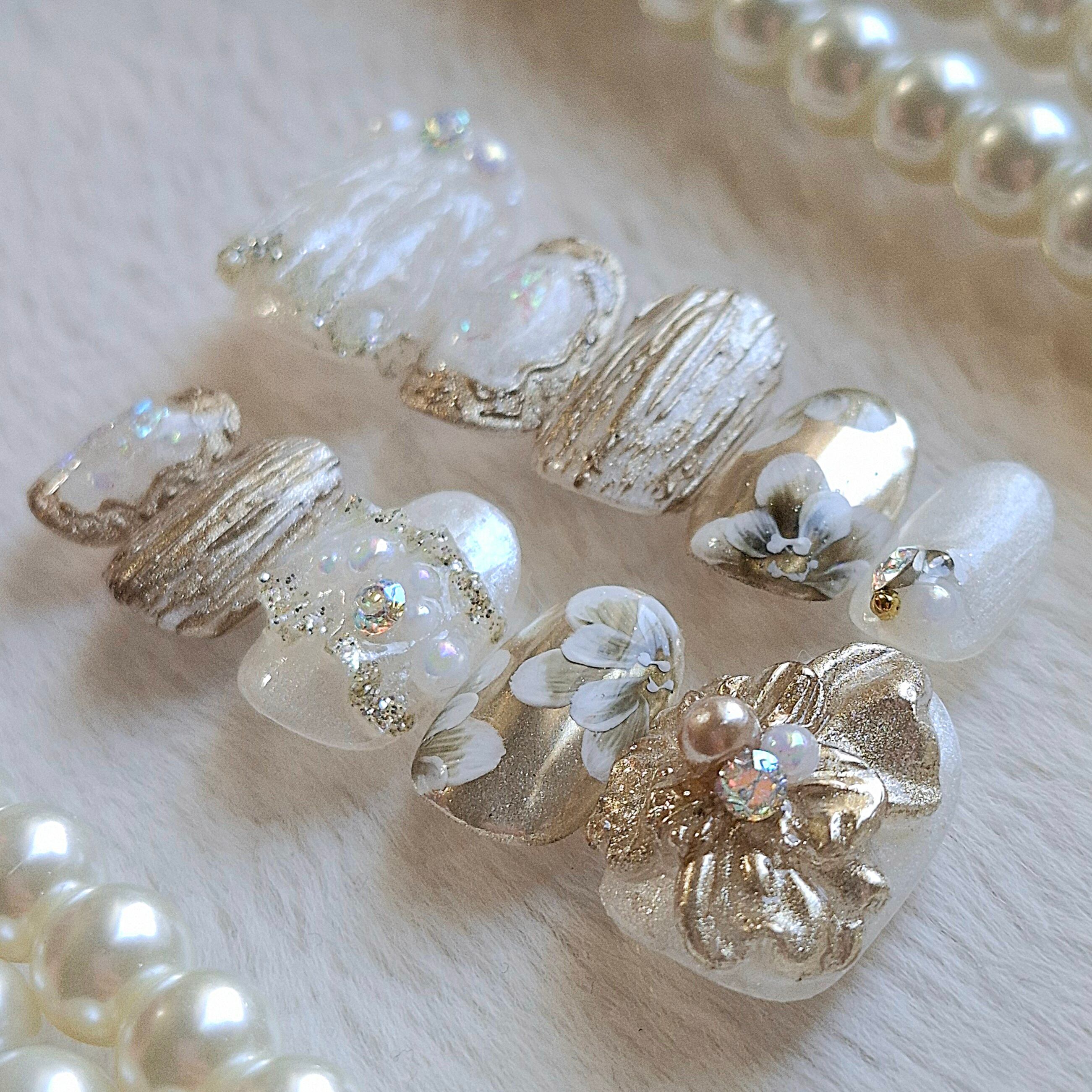 ネイルチップ販売 オーダーネイルチップ 大人かわいい 成人式 振袖 卒業式 入学式 結婚式 お呼ばれ ウェディング ブライダル 前撮り 七五三 お祭り イベント フェス 旅行 お出掛け デート 女子会 お正月 クリスマス 普段使い 個性派 手描きフラワー お花 手書き キラキラ 白無垢 和装 お正月 年越し ゴールド ホワイト パール