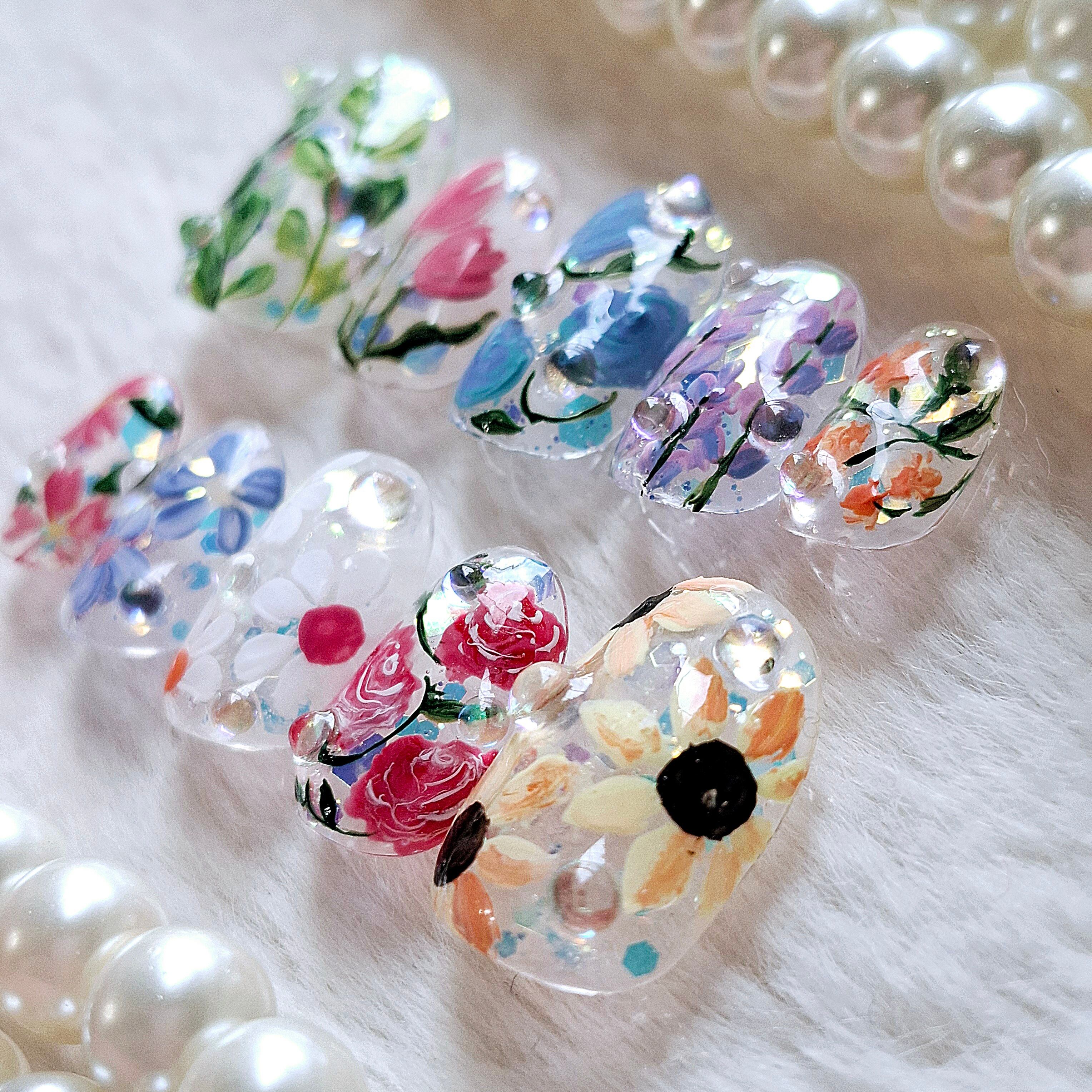 ネイルチップ販売 オーダーネイルチップ 大人かわいい 成人式 振袖 卒業式 入学式 結婚式 お呼ばれ ウェディング ブライダル 前撮り 七五三 お祭り イベント フェス 旅行 お出掛け デート 女子会 お正月 クリスマス 普段使い 個性派 手描きフラワー お花 手書き キラキラ 白無垢 和装 お正月 年越し お花見 派手 華やか リーフ チューリップ 薔薇 ラベンダー キンモクセイ ひまわり マーガレット ネモフィラ 桜